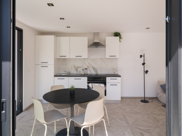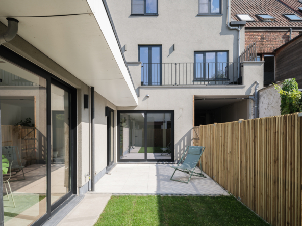 Stap binnen in dit volledig gerenoveerde appartement en voel meteen de warme, uitnodigende sfeer. De lichtrijke leefruimte vormt het kloppend hart van de woning: grote raampartijen laten het namiddaglicht gul binnenstromen en creëren een open, luchtig gevoel. Vanuit de woonkamer wandel je zo het terras en de gezellige tuin in, een plek waar je kan ontspannen, genieten van de zon en de stilte rondom je.