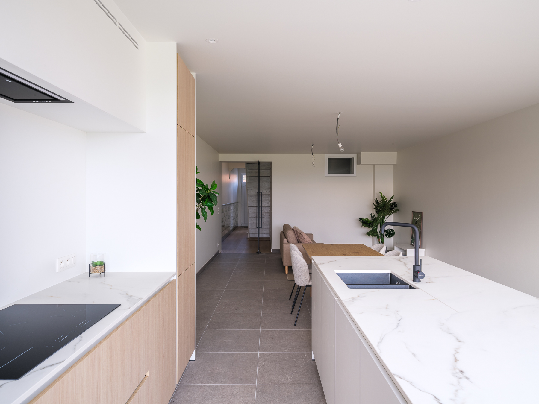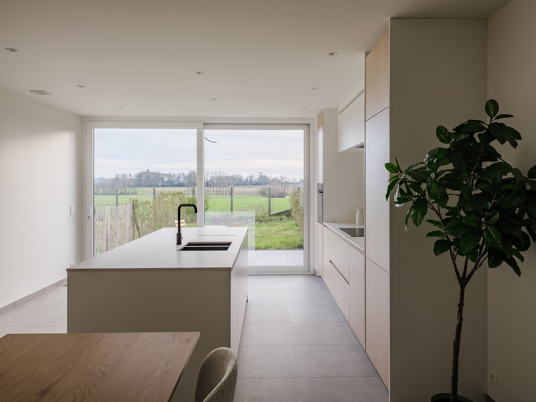 Van zodra je de woning binnenstapt, voel je de doordachte aanpak van de renovatie. De lichtrijke leefruimte vloeit naadloos over in een stijlvolle, volledig uitgeruste open keuken. Van hieruit geniet je elke dag opnieuw van een adembenemend vergezicht over uitgestrekte velden — een uitzicht dat nooit verveelt en meteen een gevoel van thuiskomen oproept.